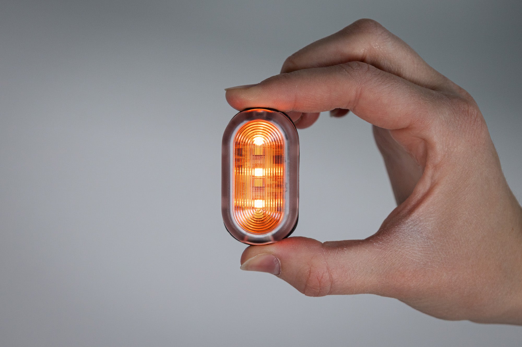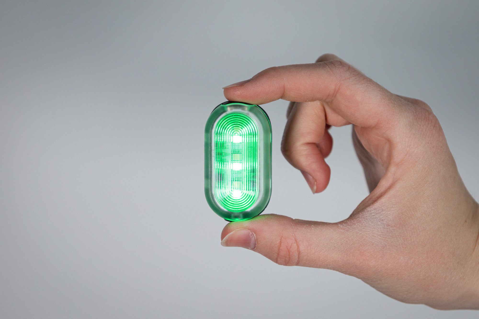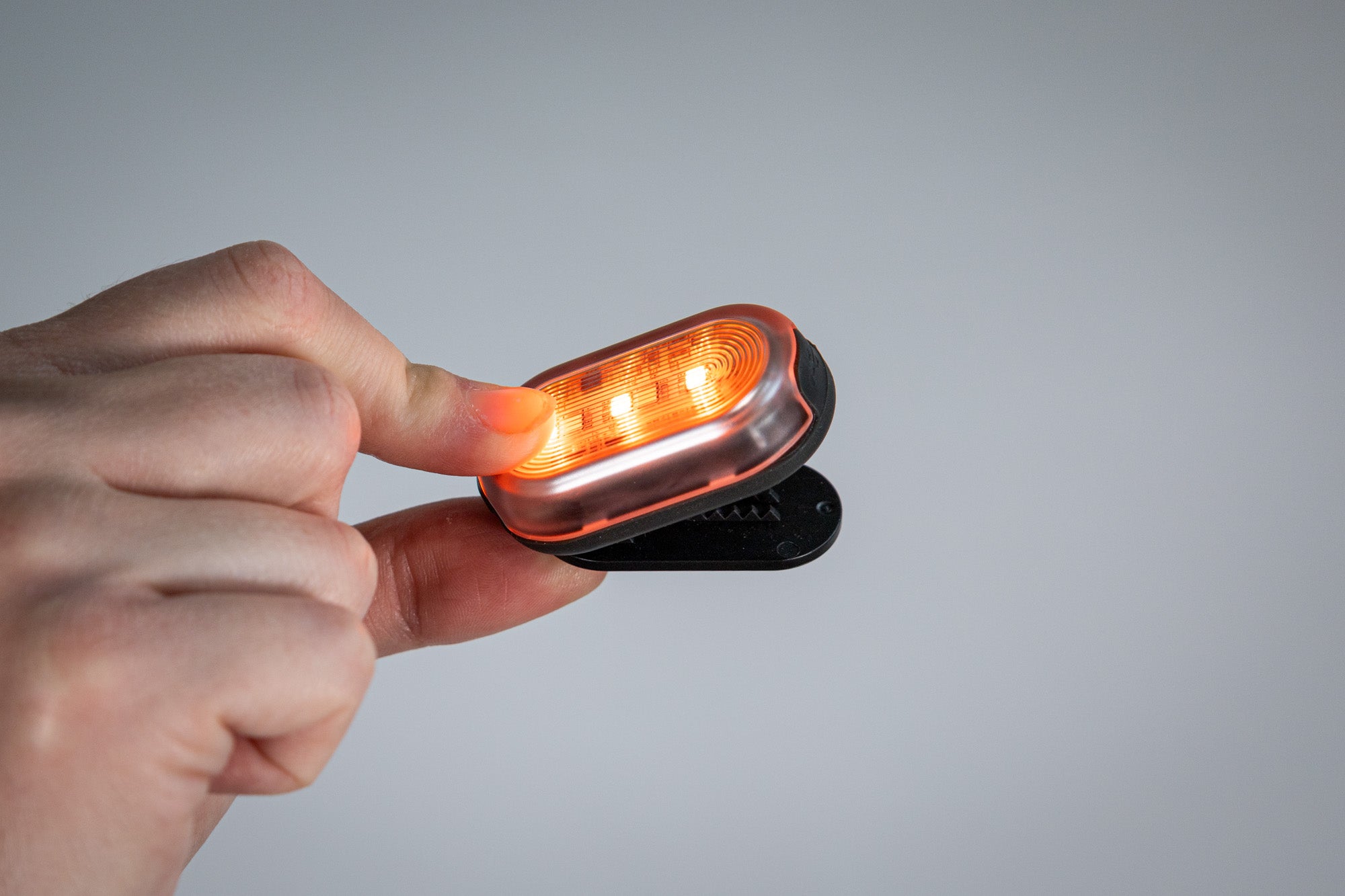 Vælg mellem rød, grøn eller orange for at matche din stil. Hver farve inkluderer også et kraftigt hvidt lys for maksimal synlighed ved behov.